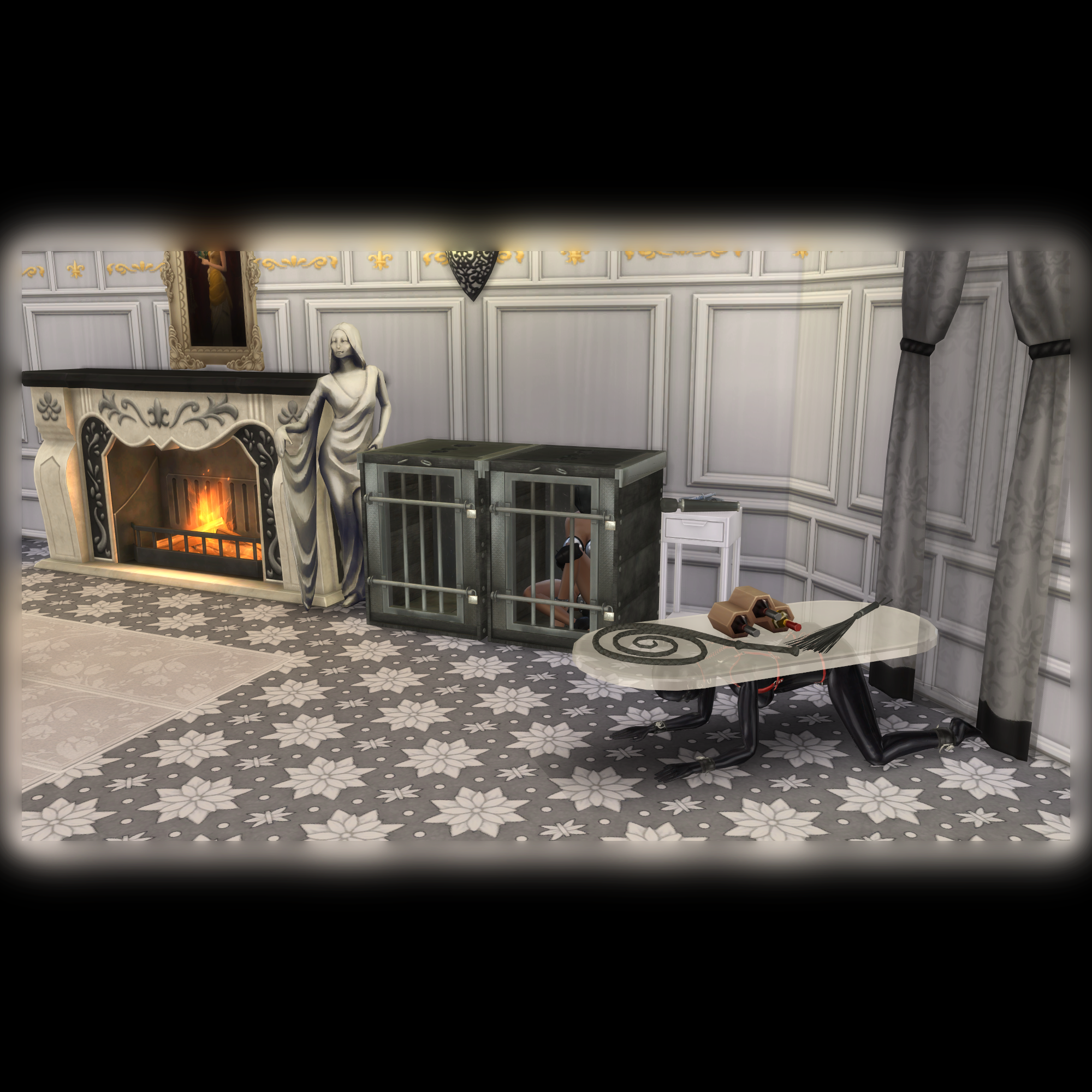 Works as a bed, has a low difficutly lock-in. Has a locked-in preroll for assigned sim, or random Owned sub (when unassigned) on a lot during travel load.
